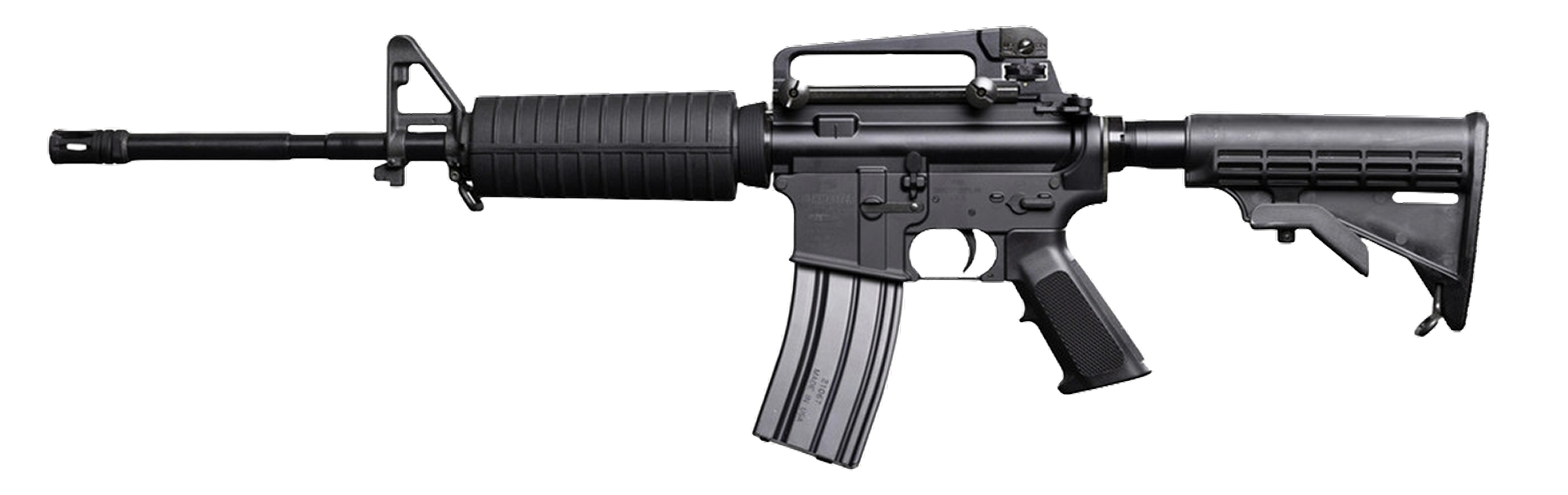 The M4A1 is a fully automatic variant of the M4 carbine. It features a 14.5-inch barrel, collapsible stock, and is the standard service rifle of the U.S. military.